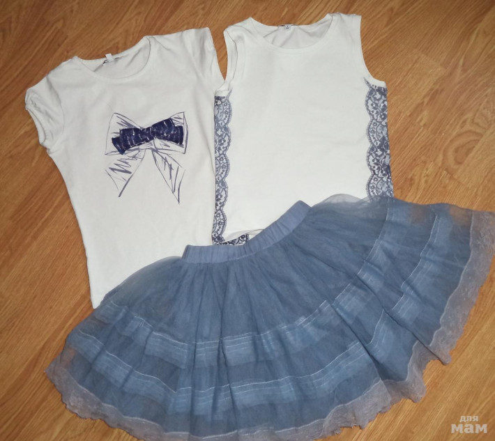 Комплект юбка Monnalisa р 6 есть зацепки и футболка р8 распустилась нитка в низу и майка Simonetta р8 ношен активно,состояние хорошее цена 1300