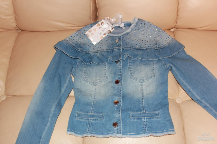 Очень нарядная джинсовая курточка в рюшках и стразах, оригинальный дизайн, новая, р.38. Подойдет от 140 и 146+ 4500 руб.