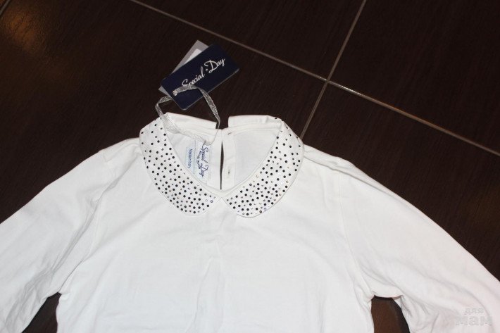Новая трикотажная кофточка SPECIAL DAY (Италия) с воротничком со стразами, отлично в школу, р.12 лет, 1200 р. Стоила гораздо дороже, в предзакатен 40 евро ПРОДАНО