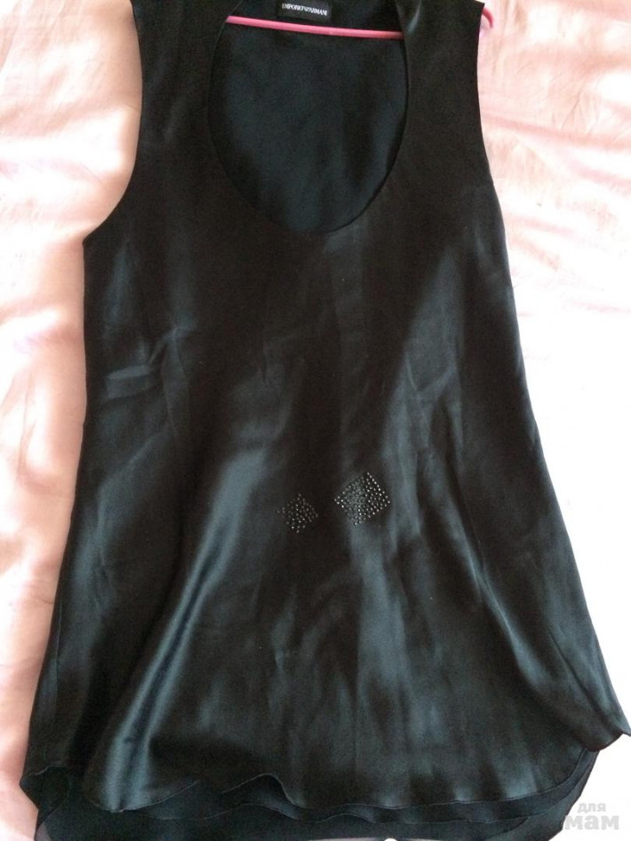 Красивая шёлковая Блуза Armani оригинал цвет чёрный ,шёлк украшена стразами , сзади элегантный капюшон размер 40 Ит
