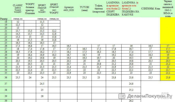 Размеры 21-35