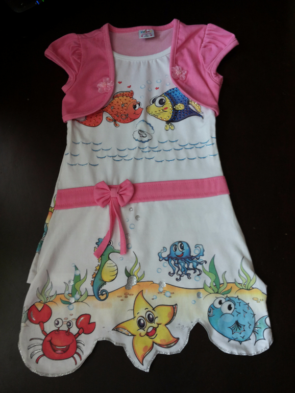 Было в комплекте с лосинами. Их одевали, а платье-туника оказалось оочень большим, поэтому не носили. размер не могу точно сказать, поэтому, если заинтересует, сделаю замеры