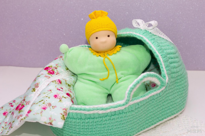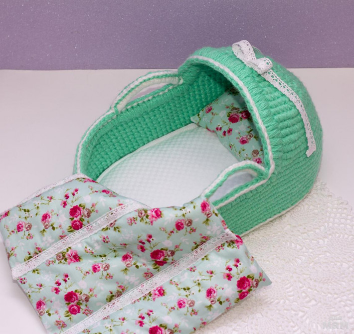 Вот такую люльку - переноску для куколки до 35 см, может связать каждый, кто хоть немного знаком с крючком!
