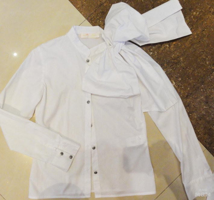 1. Самая стильная блуза с бантом на 11-12 лет, 146 см, на рукаве есть точка от ручки, одевали только на праздники, 1000 руб.