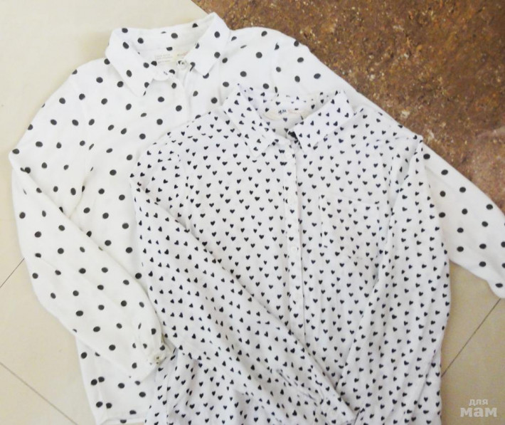 3.Рубашка в горошек Zara 11-12 лет,цена 500 руб.; в сердечко H&M 12-13 (носили на 12 лет) в идеальном состоянии, цена 500 руб.