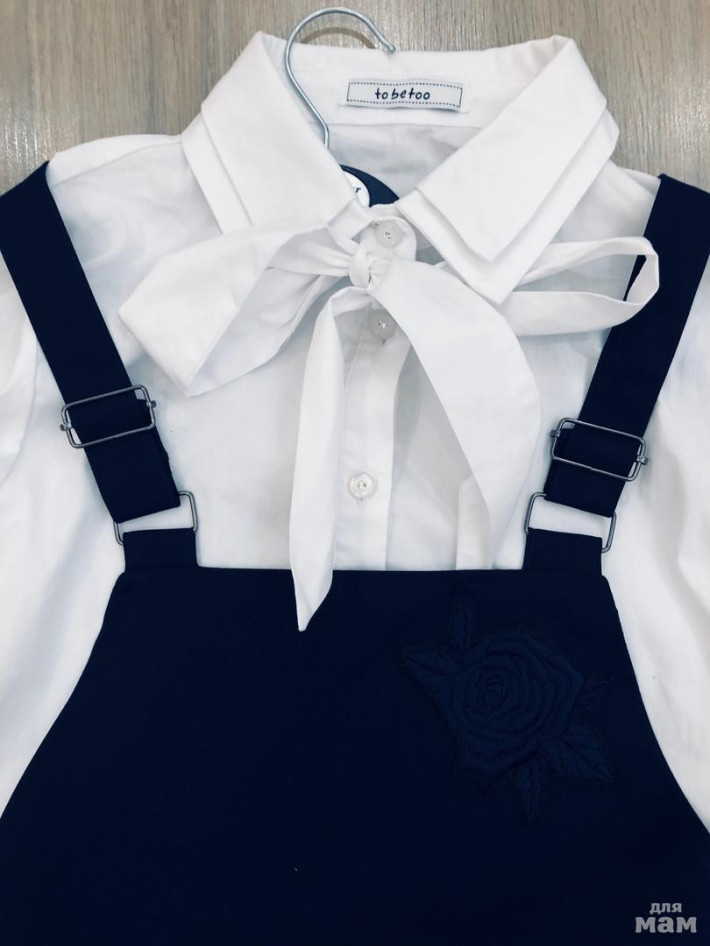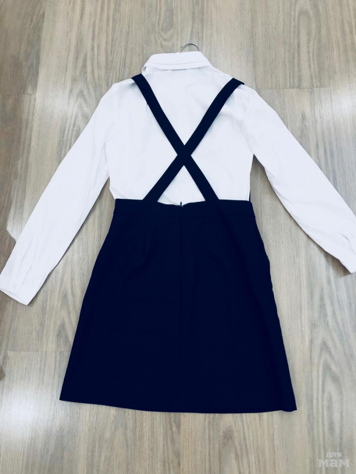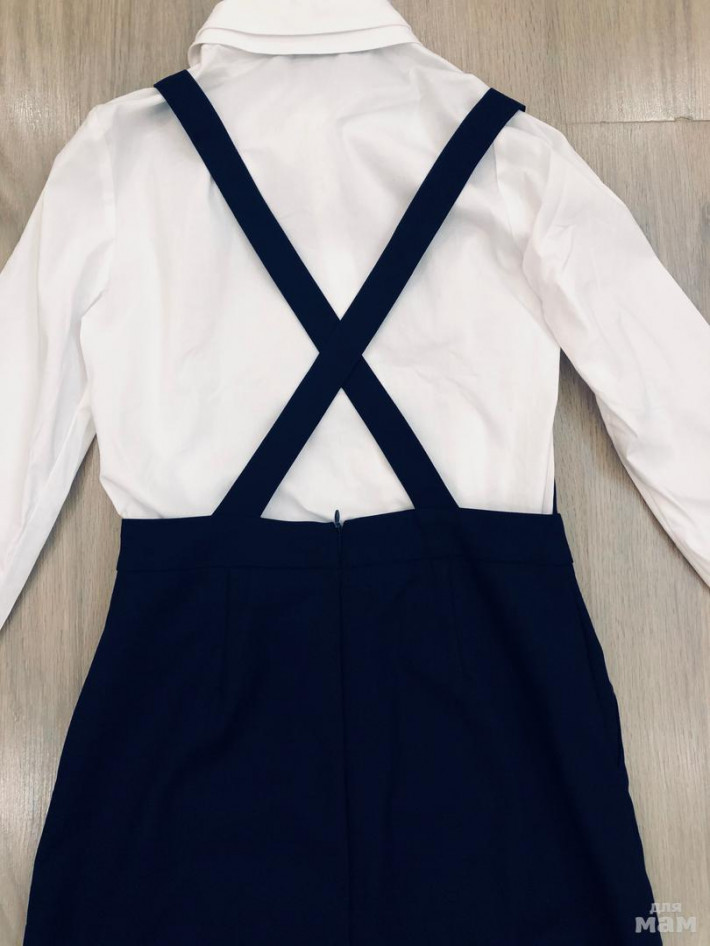 синий сарафан с цветком Орби 158 (маломерит), одевали один раз, переросли, талия 35, длина от грудки 66, от лямок 82 (лямки регулируются), комплект смотрится очень стильно, 2000 р.
