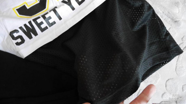 майка в сетку + укороченная футболка с открытыми плечами.