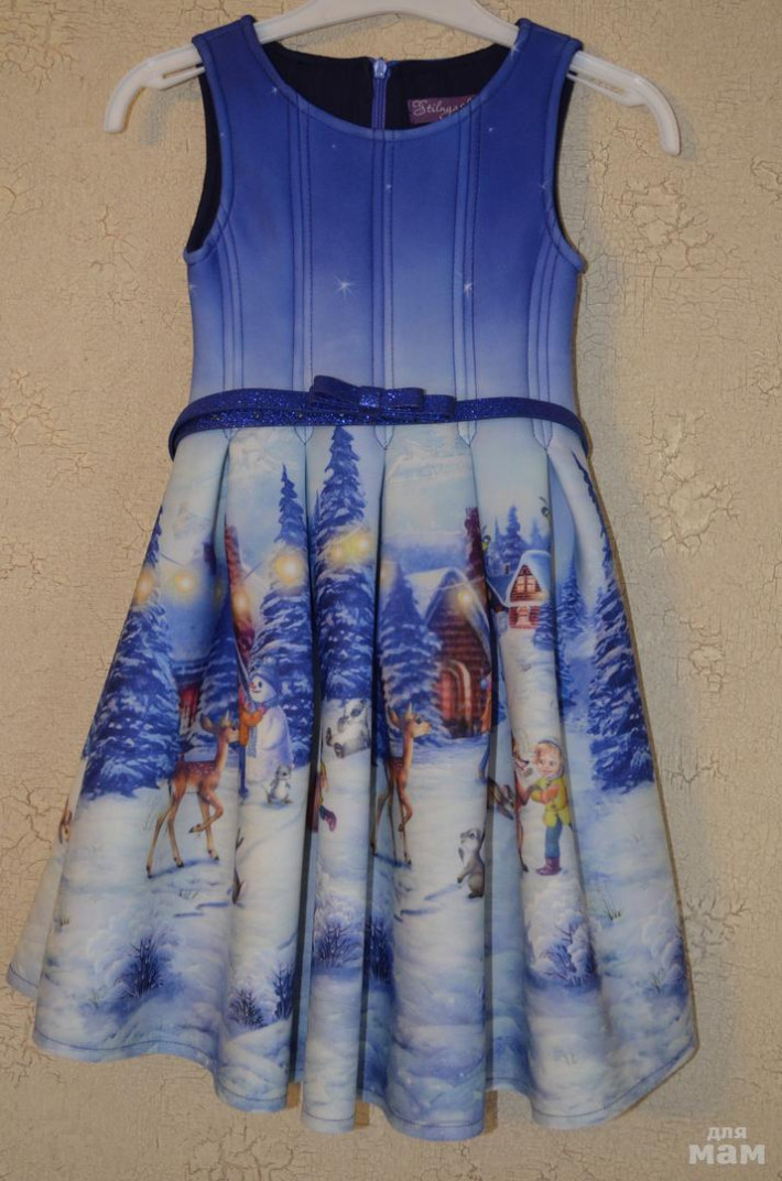 Новогоднее синее платье Снежная сказка от Стильняшки, размер на 4-6 лет (указан рост 110). Надето 1 раз. Состояние новой вещи.