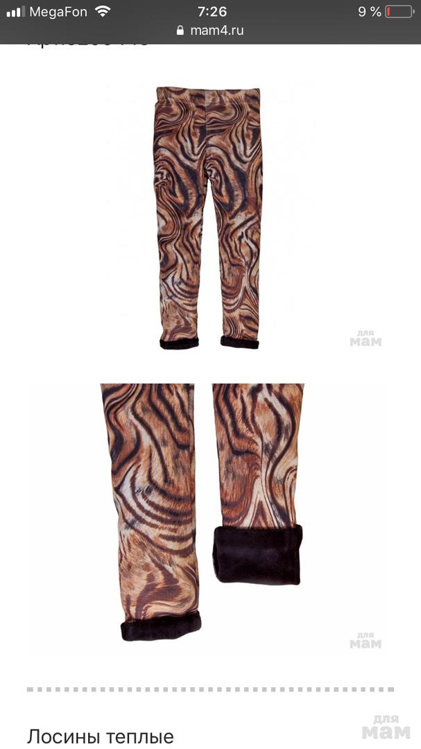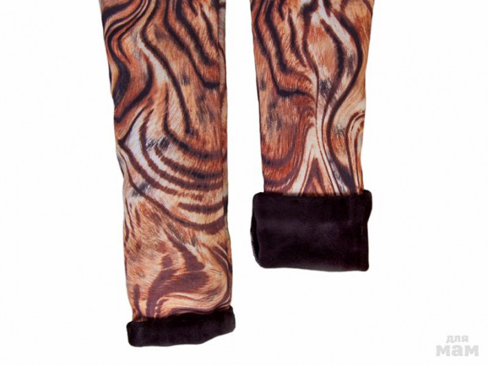 Лосины выполнены из очень плотного эластика, примерно 120 дэн. Внутри утеплены меховушкой. Внизу проходит резиночка.