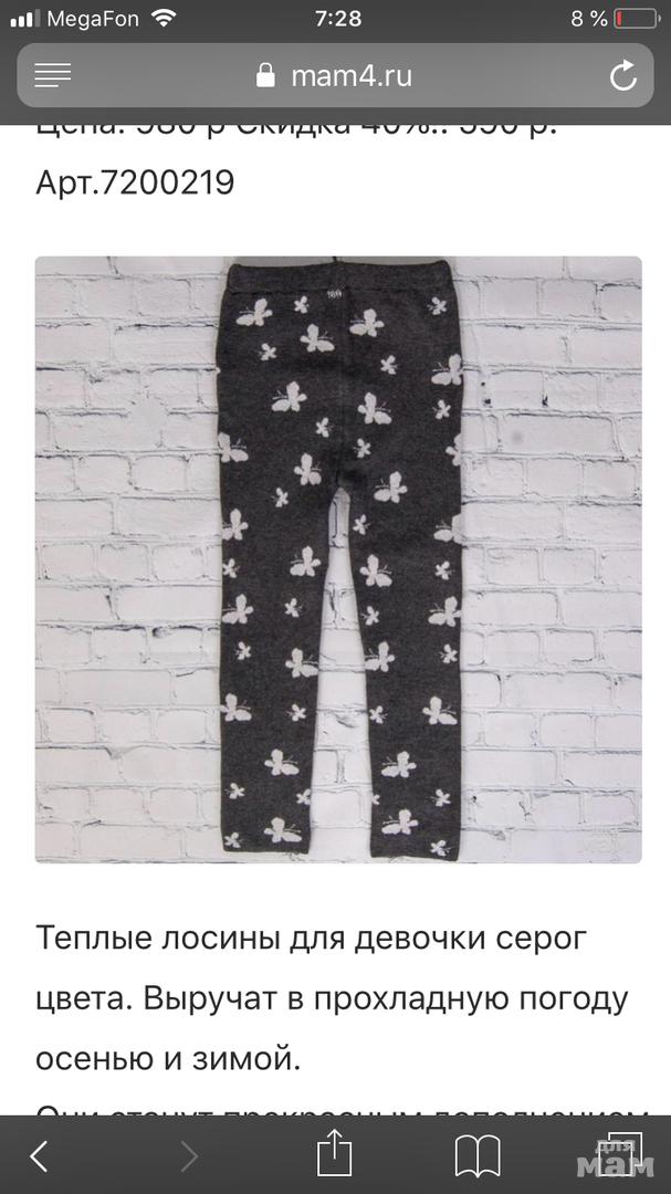 Утепленные лосины для девочки выручат в прохладную погоду осенью и зимой. В составе: 60% шерсти. Сидят аккуратно, по фигурке.