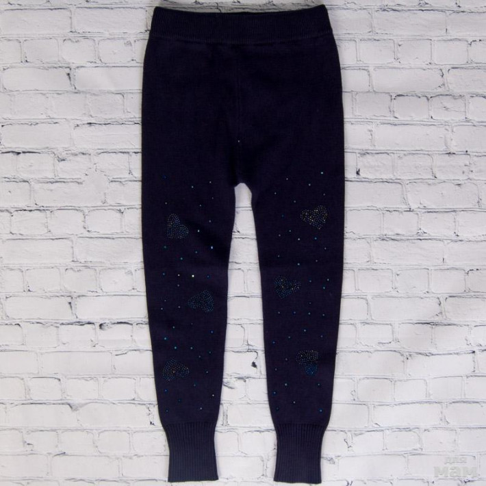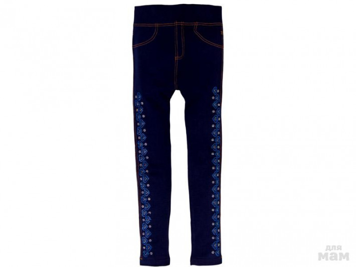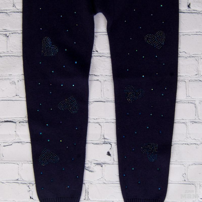Лосины для девочки в синем цвете. Украшены внизу стразами.