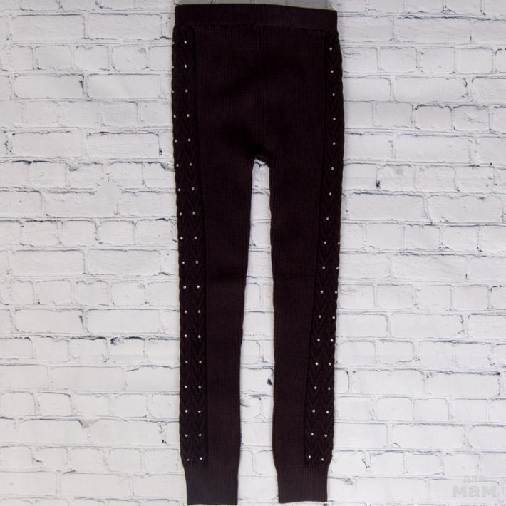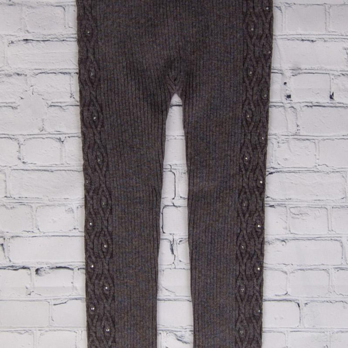 Лосины вязаные, с рисунком "косичка", внизу проходит трикотажная резинка.