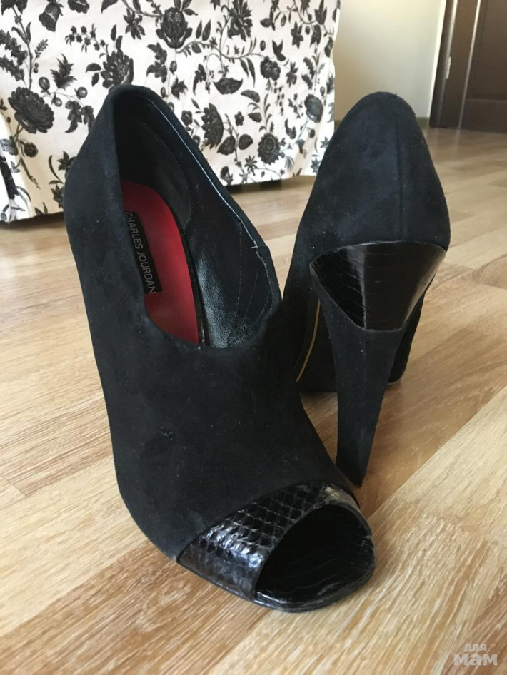 Красивые замшевые туфли. Интересно комбинированный каблук. Обуты один раз, не могу носить каблуки. Размер 40, полностью кожа. Состояние отличное