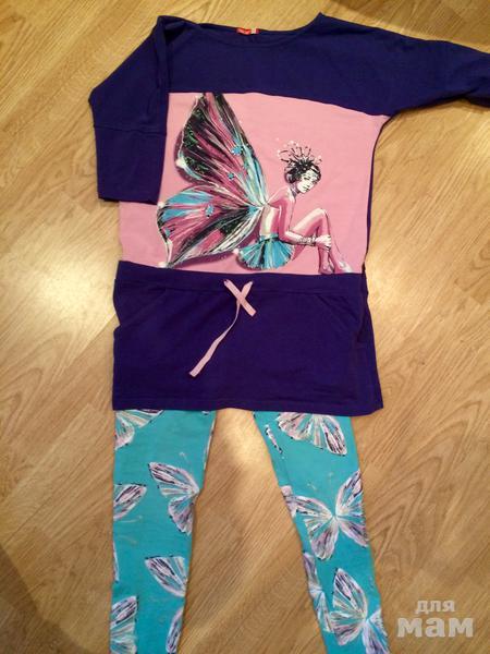 Комплект в отличном состоянии, 100% хлопок, лосины длинные, туничка с карманами, смотрится также как на коробке.