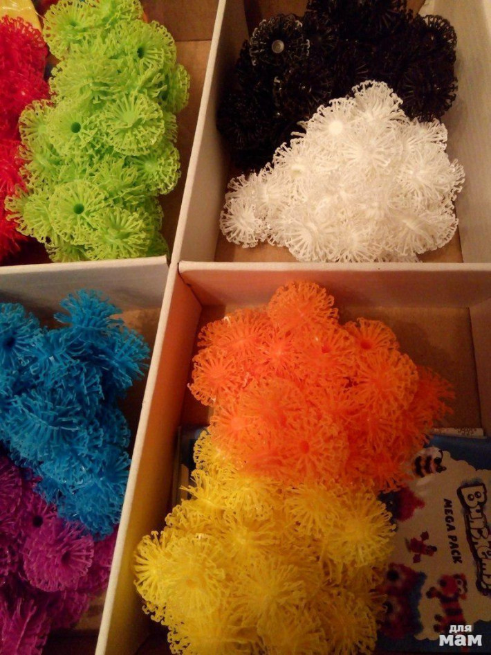 В наборе 400+ деталей: шарики-липучки 8 цветов + аксессуары (ножки, глаза, уши, рожки и т.п.) + инструкция.