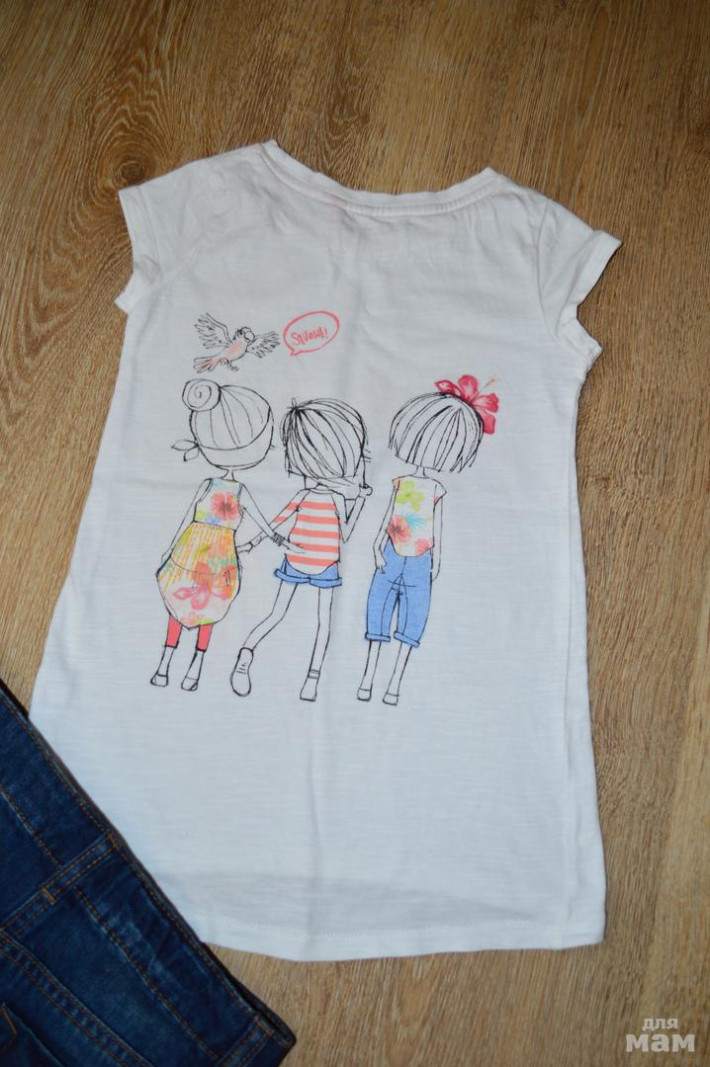 Продам удлиненную футболочку- туничку фирмы некст, интересный принт спереди и на спинке, состояние отличное- без недостатков. На рост 116-122 см.
