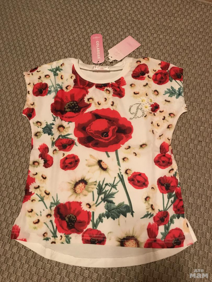 Шикарная Футболка со стразами, маркировка 146, чуть маломерит.