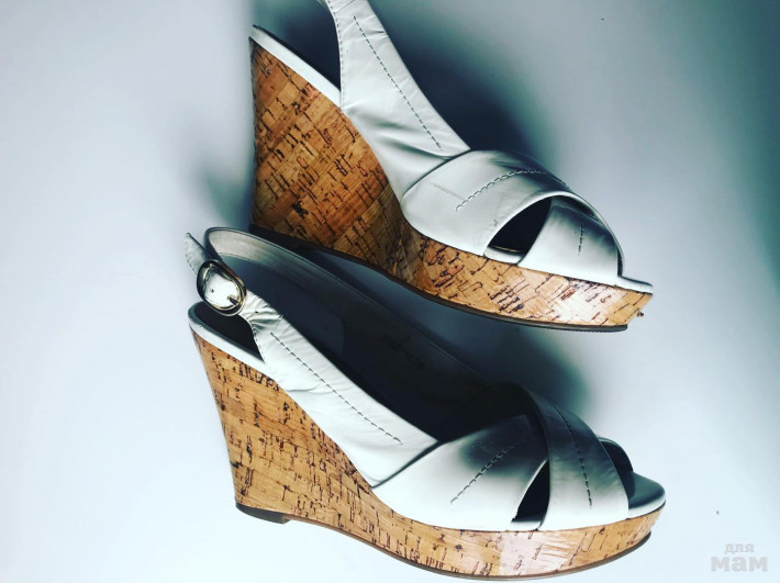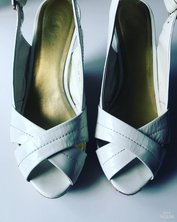6️⃣босоножкт белые Италия, на очень удобной платформе! Кожа, лак,38 размер