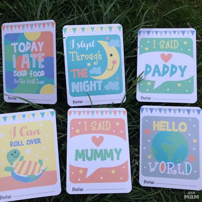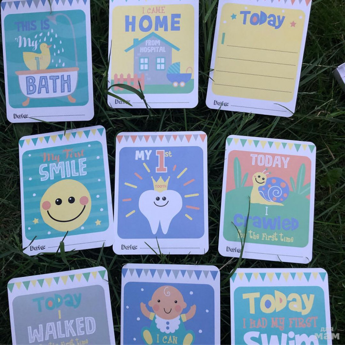 Комплект для фотографирования малышей. 24 карточки с самыми важными событиями вашего крохи . Все карточки подписываются , и могут храниться в альбоме на долгую память .