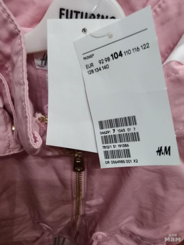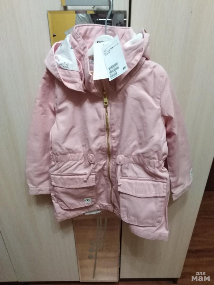 Продам новую весенне-летнюю парку H&M размер 104, но маломерит немного, лучше 98-104( от 3 до 4 лет). Цвет нежно -розовый, такой как на картинке. Без утеплителя, с капюшоном. Продаю т.к нам узковата оказалась, она на худенькую девочку. Замеры, дополнительные фото по запросу.Цена 900 р + почта
