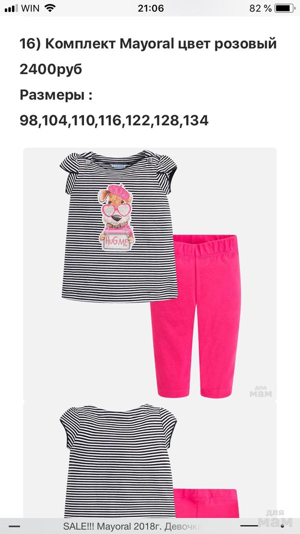 1) Комплект Mayoral цвет розовый, желтый 1900руб