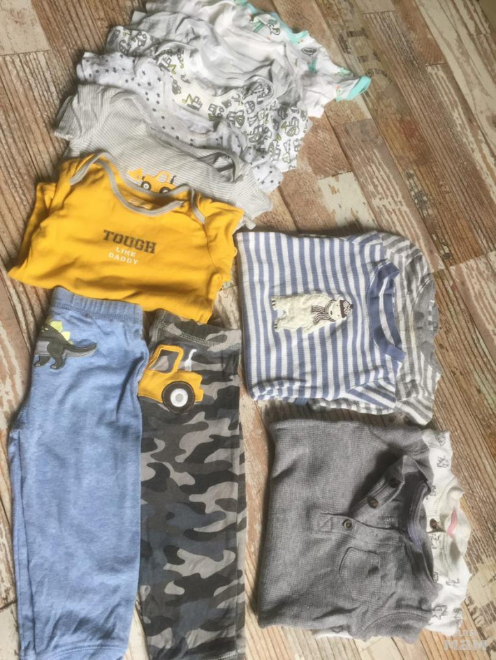 Вещи после одного ребенка, что то хорошо ношенное, что то нет. Дырок нет, но вот пятна кое где есть, то ли от лежания, то ли от носки. В основном бренды Children's place, Carters, Gymboree