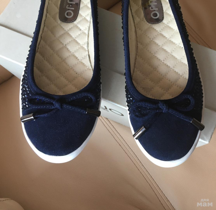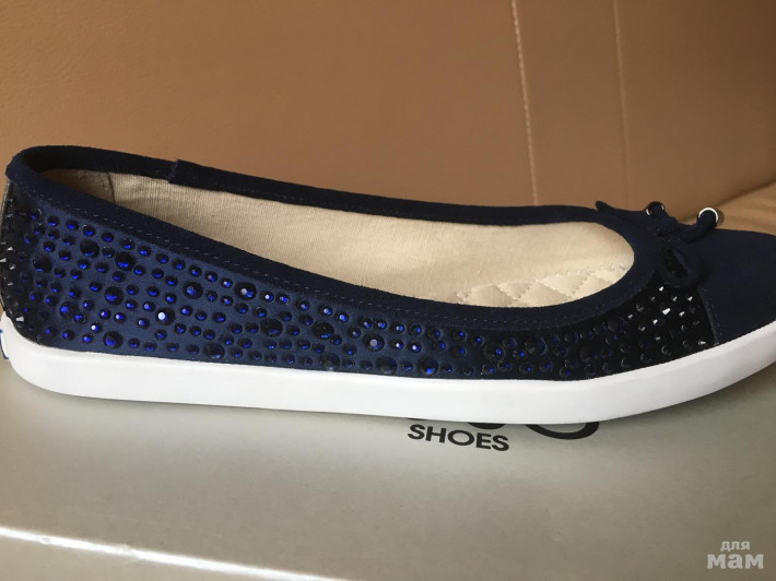 Чудесные новые балетки темно-синего цвета с россыпью крупных страз, мягкой подошвой. Мне не подошли, к сожалению((( Модель на худые или узкие ножки. Подойдут и под платья, и под джинсы! 😊👍
