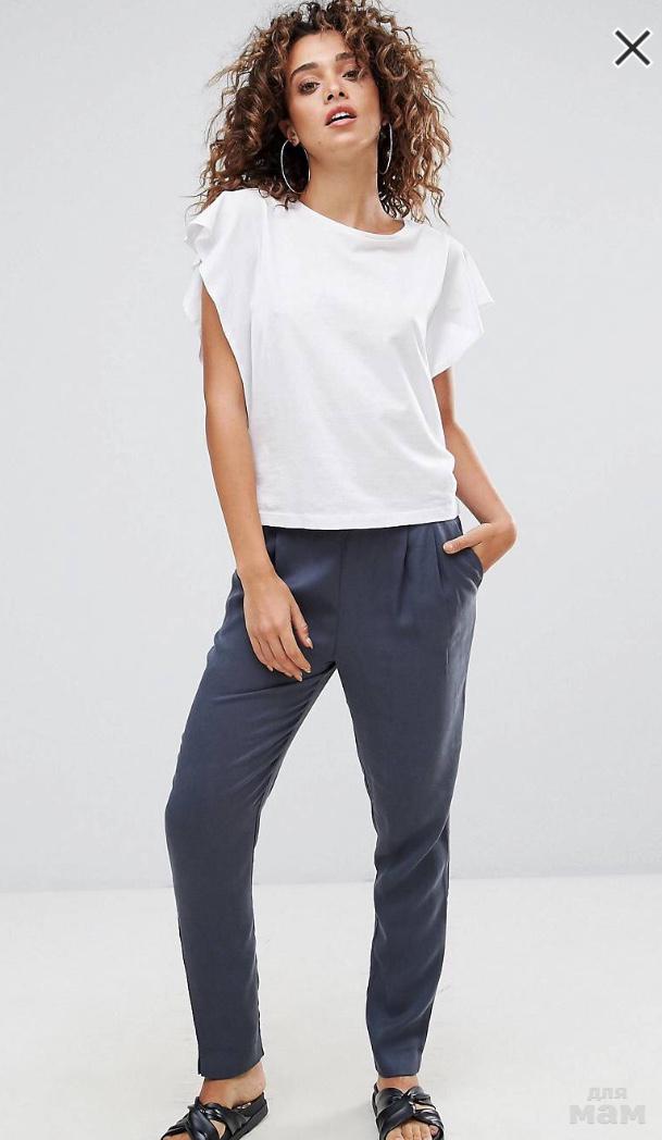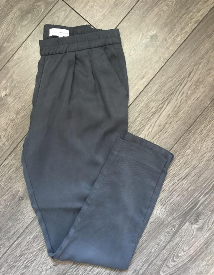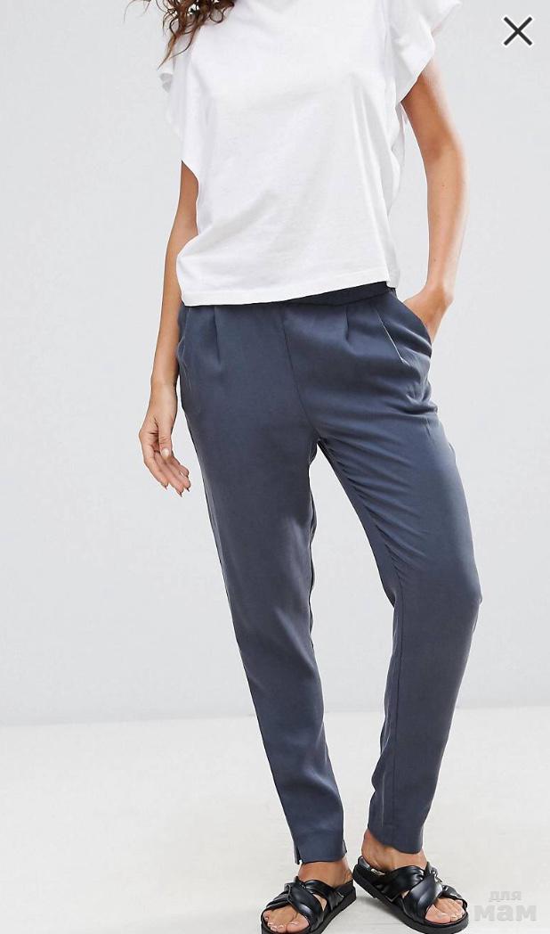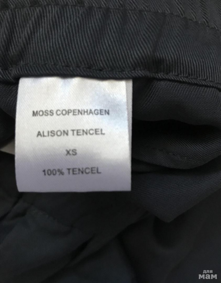 Новые строгие брючки Moss Copenhagen. Отличное качество! Эластичный пояс на резинке, спереди заложены по 2 мягкие складки, боковые карманы, небольшие разрезы снизу на брючинах, книзу немного заужены. Габардиновое плетение ткани, великолепный состав 100% тенсель (материал натурального происхождения, который изготавливают из древесины австралийского эвкалипта и подвергают нанообработке). Очень красивый графитовый цвет. Легкие, приятные к телу, стильные штанишки для лета! ПОТ в спокойном состоянии 36 см, растягвается до 40 см. ПОБ в самом широком месте 55 см. Длина по внутреннему шву 73 см. Посадка по переднему шву 27 см, по заднему 37 см.Пересыл за счет покупателя-300=