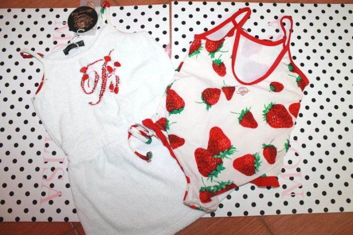 Нежная пляжная туничка новая, этикеточка пришла срезанная, но не одевали - видно, + шикарный купальник б/у на ярлычке и тунички и купальника 5 или 6 не помню, срезали ярлычек, маломерочка, одели в 4,8 лет.