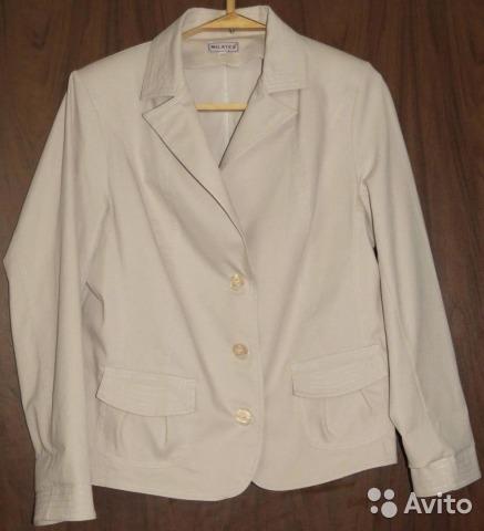 Продам летний жакет, отличного качества.Новый!Жакет отлично сидит, очень приятный к телу. Жакет застегивается на пуговицы,есть 2 кармана.Цвет:слоновая кость. Размер: 54. Длина 61 см, грудь 58 см, рукава от плеча 63,рукава по внутреннему шву 47 см. Материал: хлопок/полиэстер. Производитель: Россия.Встреча м.Лермонтовский проспект.
