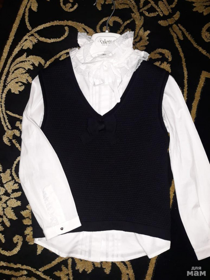 Сарафан 6л. 4000р. Блузка белая 3000р. Костюм 6 л. 6500р. Жилетка серая и черная 6л. 2900р. Розовая блузка сатин.3000р.