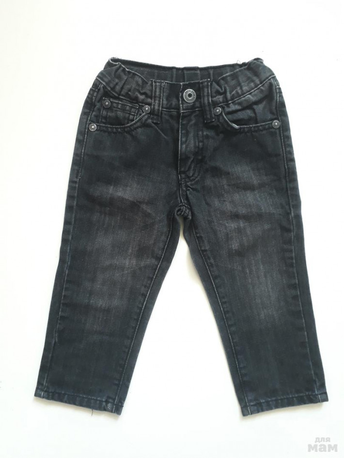 Джинсы 12-24 мес, рост указан 92. На манжетах, внутри в поясе вставлена резинка, для регулировки по талии. Очень хорошее состояние. 249.