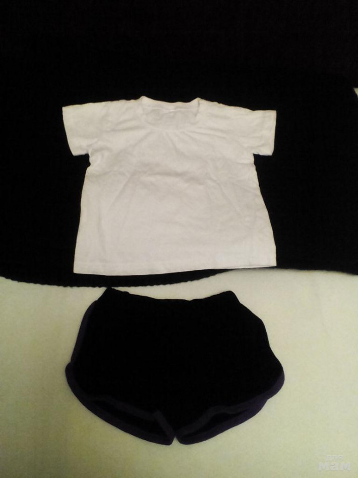 Спортивная форма футболка+шорты 2-3 г.. Футболка р. 98, шорты 92. Состояние отличное. Носили в садик по 15 мин. 2 раза в неделю около 3 мес. Шорты с малиново-фиолетоврй окантовкой, смотрятся стильнинько, движения не сковывают. 100% хлопок.Отправляю в регионы