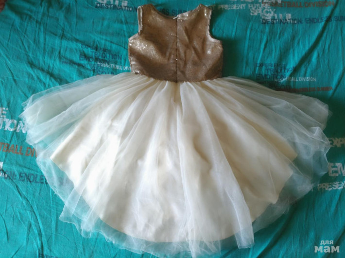 Шикарное нежно-золотое платье, маркировка 7 (122р), но по факту надевали с ростом 130см. Надето было на 1 час на первую часть дня рождения. Внутри хлопковый подклад. Корона не продается, моя работа, но могу повторить для вас)