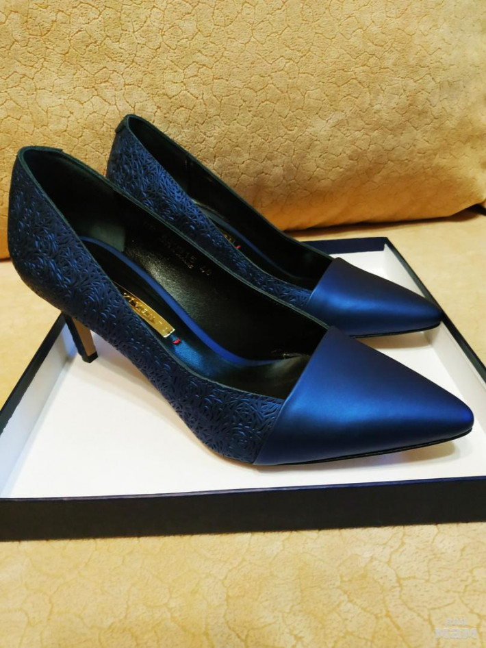 Новые туфли Modus Vivendi, размер 40 (на не очень широкую ногу). Кожа с красивым рисунком темно-синяя с перламутром.