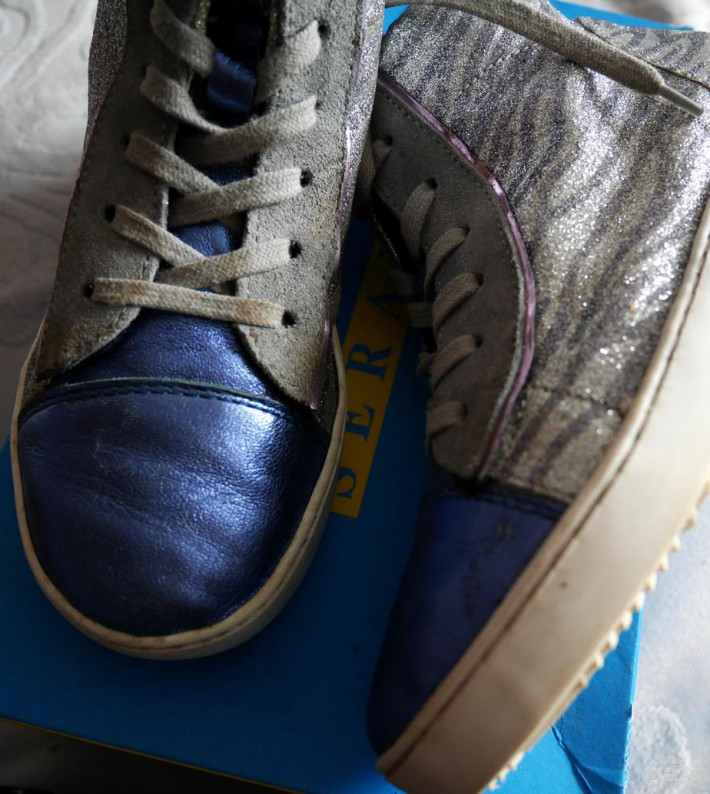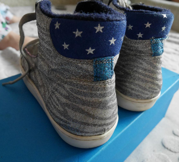 Немного стерлась с края краска на левом ботинке, шнурки нужно постирать - молнии нет.