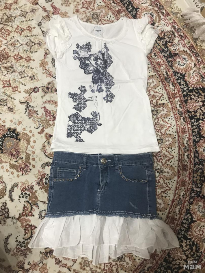 Майка Parrot 8л. Где рисунок-там одни стразы-очень красивая ). Длина 43.5см., в подмышках 31см., юбка 8л. Пояс 29.5см(есть утяжка) длина 28см. 1900 руб. за комплект. Майка б/у 1-2 раза, комплект в отличном состоянии .