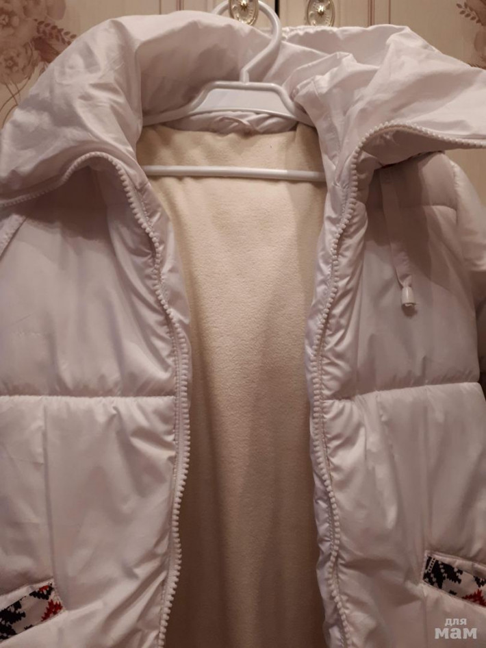 Зимнее пальто (изософт) на 5-6 лет в хорошем состоянии, внутри флисовая подкладка. Не смотря на белый цвет, пальто оказалось не марким, очень удобное. Дочка худенькая, поэтому носили до 7 лет