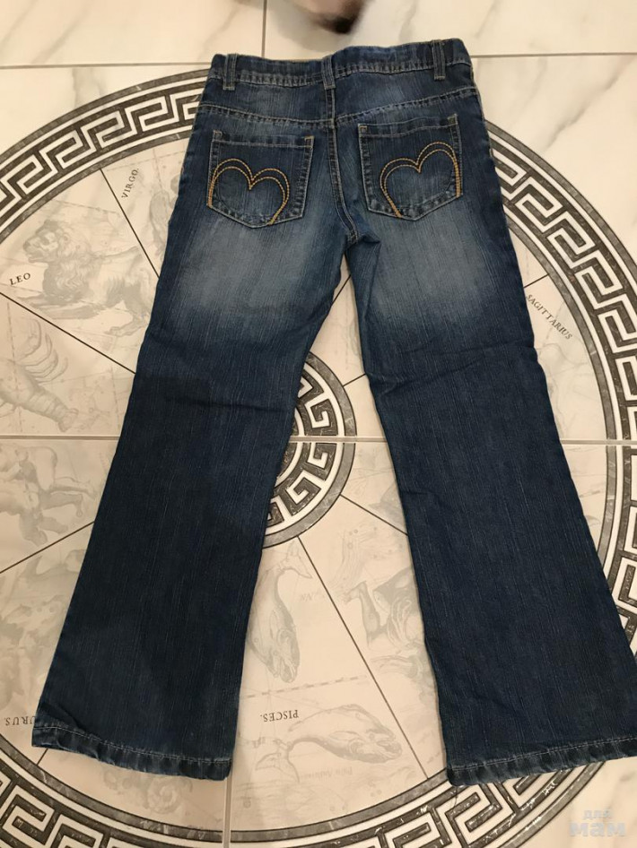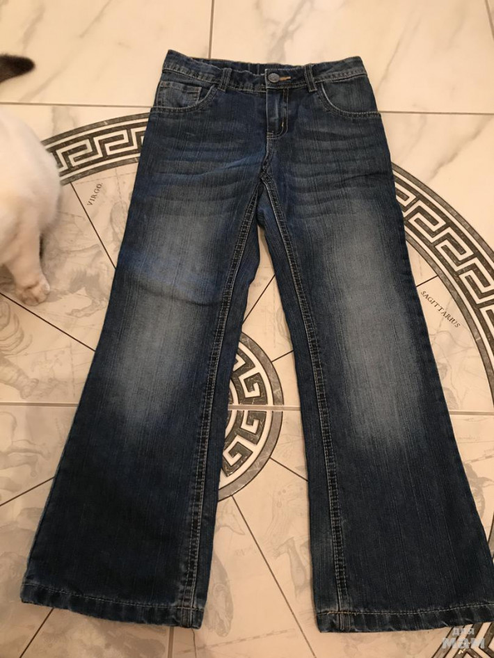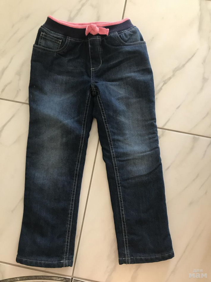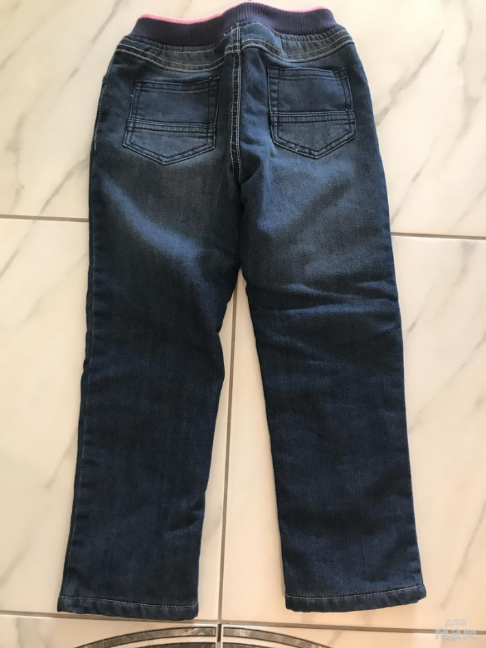 Джинсы на хлопковой подкладке . Размер 6-7.до 122 см. Внутренний 54, внешний 72, талия 30, есть втяжки.