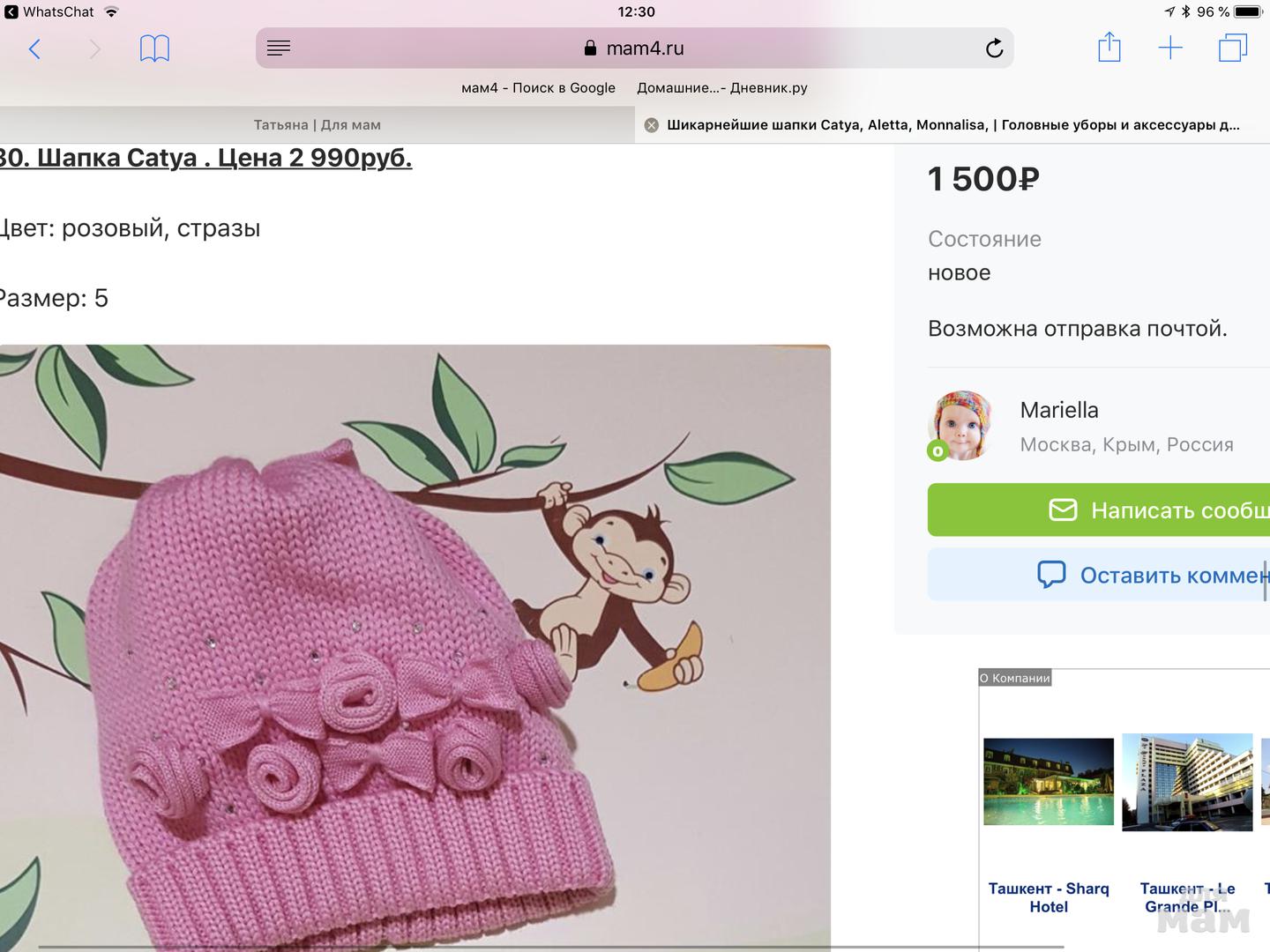 65. Шапка Monnalisa. Цена 2500 руб.