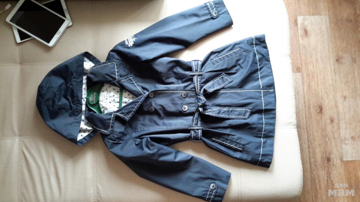 В отличном состоянии, цвет тёмно-синий, застежка на молнию и пуговицы, капюшон отстёгивается, подкладка х/б, одевали изредка и на 1 сентября, уже переросли.Носить можно с роста 122см до 140см