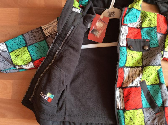 Жакет крепится к куртке удобной молнией, может быть самостоятельным предметом одежды: кофта с флисом внутри и двумя врезными карманами с защитой от влаги