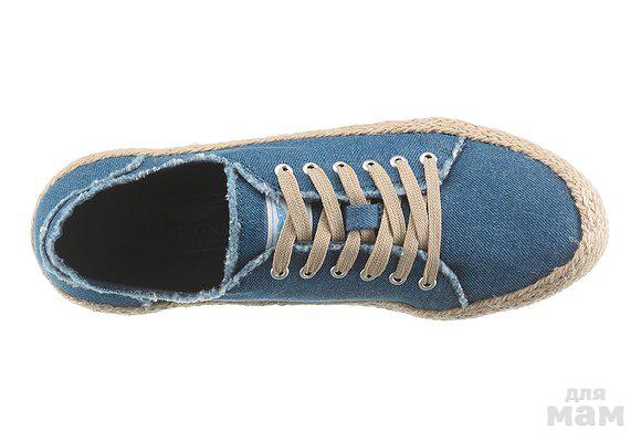 В духе стиля casual: кеды из текстиля цвета денима с необработанными краями. Спереди классическая шнуровка для индивидуального регулирования ширины. Высокая синтетическая подошва эффектно отделана джутовым плетением. Внутри приятная отделка и стелька из текстиля. Стандартная полнота. Прекрасная пара обуви для непринужденных ансамблей.