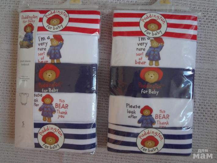 37)3-6 мес ( остались 3 справа 840 руб ) 6-9 мес ( остались 3 слева 840 руб ) боди с длинным рукавом Мишка Паддингтон фирма paddington for baby