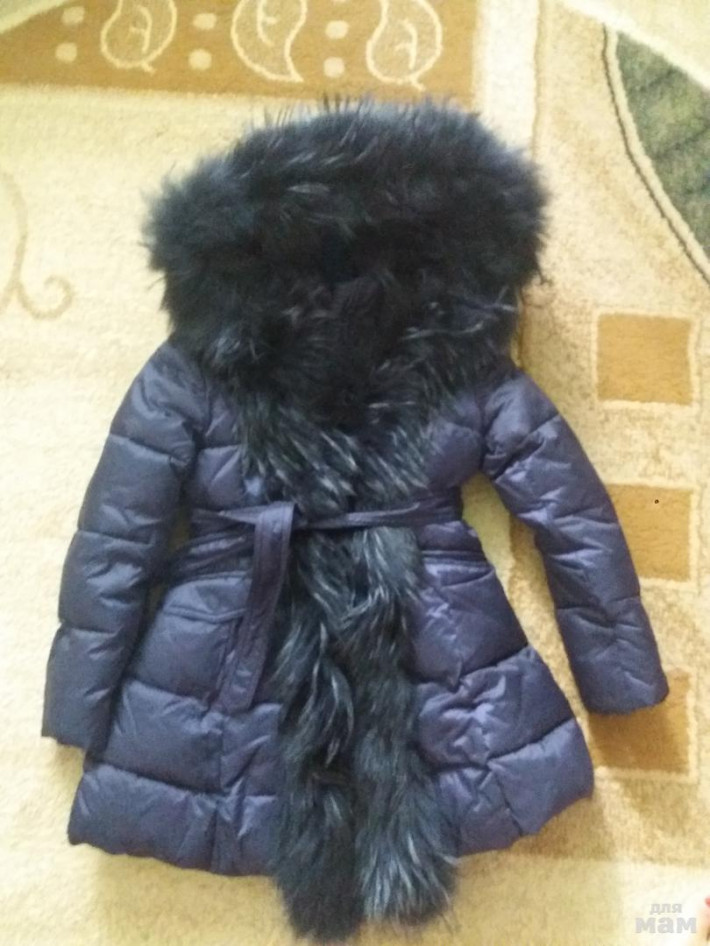 Пальто,р 122 мех натуральный,он шикарный,как впрочем и само пальто,наполнитель биопух,очень теплое, верх подклада,велюр,можно стирать в машинке.Состояние,отличное.Носили,одну зиму.На горки,была другая одежда.Очень,оригинальное,мех отстегивается.Ткань,с отливом,фото не передает,красоты в реальности