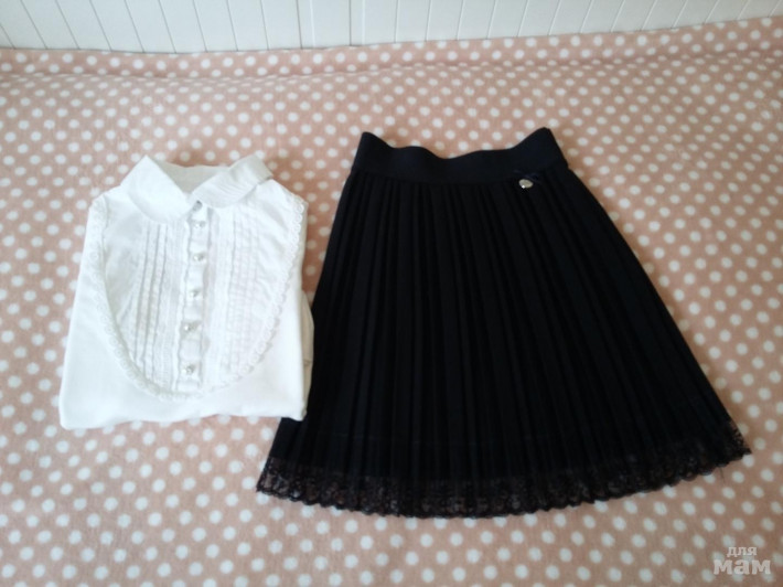 К юбке положу блузку Accola р.134 б/у в хорошем состоянии, цвет молочный.
