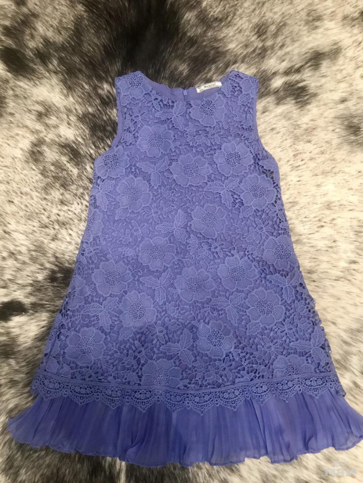 Размер 134. Очень красивое, не избитая модель. Брали на выход как второе платье, чтобы белое не испачкать. Следов носки нет. Можно носить как тунику когда станет мало.