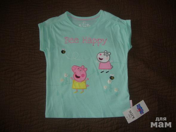 Новая футболка д/д фирмы Marks&Spencer "Свинка Пэппа".Маркировка 4-5 лет, но большимерит и сядет хорошо 110-116р.Цвет: нежно-бирюзовый. Белые цветочки объёмные.Покупала по распродажи.Цена-499р.