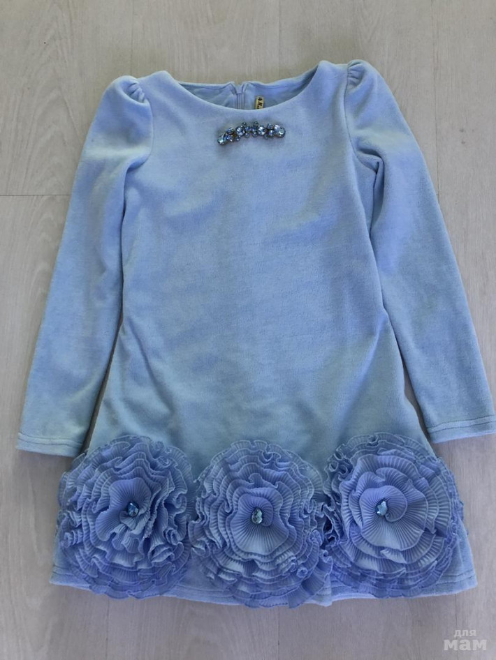 Нежнейшее бархатное платье небесно-голубого цвета ( на фото цвет не получился) р.140, можно и раньше. В отличном состоянии.