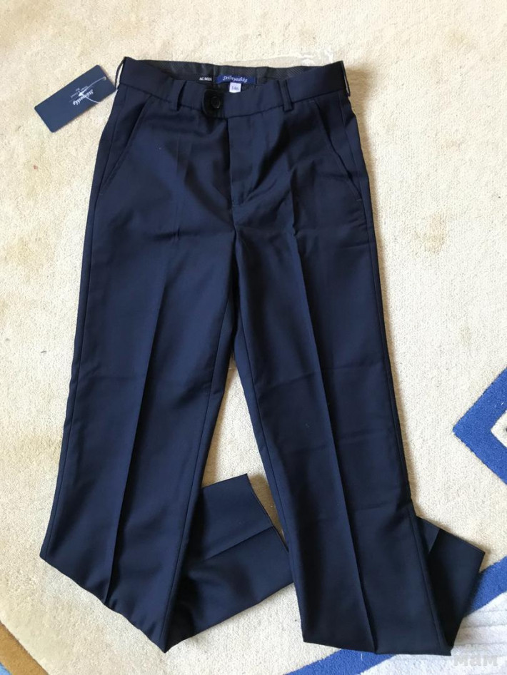 Школьные брючки для мальчика на рост 146, очень хорошего качества, полиэстер 48%, вискоза 46%, эластан 6%, не мнутся и очень хорошо сидят. Мы не угадали с размером, велики.